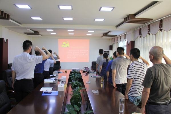 溫慶生首先回顧了99年來黨的光輝歷程,闡明了在“七一”前夕召開支部大會、開展主題黨日活動的特殊意義。在溫慶生的領誓下,全體黨員佩戴黨徽面向鮮紅的黨旗莊嚴宣誓,鏗鏘有力的誓言,再次彰顯了共產黨人的初心和使命。
