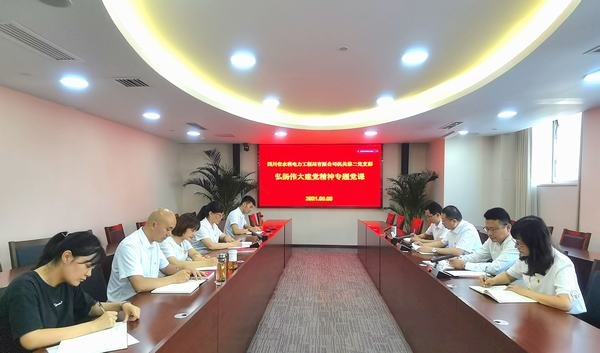2021年9月9日,公司機(jī)關(guān)第二黨支部在成都總部會議室組織召開弘揚偉大建黨精神專題黨課報告會,資陽辦公區(qū)黨員以視頻方式聆聽報告會。公司黨委書記、董事長代勇,黨委專職副書記唐驚濤,黨委委員、紀(jì)委書記陳盛華以普通黨員身份參加會議。入黨申請人列席會議。工會副主席、機(jī)關(guān)第二黨支部書記付麟麗主持會議。