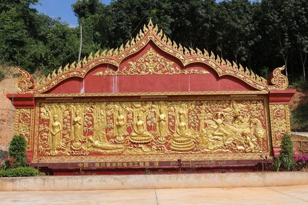 四川省水利電力工程局作為勐瓦電站的施工單位為這座釋迦牟尼大佛捐建了一座精美佛像照壁,表達對當(dāng)?shù)孛袼鬃诮痰淖鹬睾蛯峦唠娬窘ㄔO(shè)友好合作的良好祝愿。