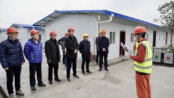 尹曉東一行抵達(dá)項(xiàng)目部后,經(jīng)體溫檢測(cè)和安全告知,在公司和設(shè)計(jì)院領(lǐng)導(dǎo)及項(xiàng)目部負(fù)責(zé)人的陪同下,首先察看了營(yíng)地建設(shè),隨后前往觀景平臺(tái)觀看樞紐工程效果圖、岷江中游航運(yùn)規(guī)劃方案示意圖,聽取了工程平面布置及施工情況介紹,其后深入到左岸堤防、篩分站、拌合站、基坑上游鋼筋加工廠、發(fā)電廠房、泄洪沖沙閘等施工現(xiàn)場(chǎng)檢查指導(dǎo),詳細(xì)了解安全生產(chǎn)、進(jìn)度質(zhì)量、文明施工等相關(guān)工作情況。
