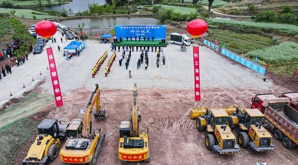 4月2日下午,自貢市榮縣旭陽鎮(zhèn)夜合村張家灣隧洞出口現(xiàn)場彩旗飄揚,洋溢著一派喜慶歡樂的氣氛,由工程局公司承建的自貢小井溝水利工程支渠工程在這里隆重舉行開工儀式。自貢市副市長鮮光鵬出席活動并宣布項目開工,市政府副秘書長江聲全出席儀式,自貢水務投資集團有限公司黨委書記、董事長梁杰介紹工程情況,工程局公司總經(jīng)理袁斌作表態(tài)發(fā)言,榮縣縣委副書記、縣長鄭小清出席講話,自貢小井溝水利工程公司總經(jīng)理吳川報告開工準備就緒、提出開工請求。市水務局局長古榮華主持活動儀式。