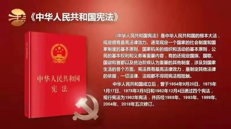 自中華人民共和國成立后,曾于1954年9月20日、1975年1月17日、1978年3月5日和1982年12月4日通過四個憲法,現(xiàn)行憲法為1982年憲法,并歷經(jīng)1988年、1993年、1999年、2004年、2018年五次修訂。在2014年11月1日召開的十二屆全國人大常委會第十一次會議經(jīng)表決通過了全國人大常委會關(guān)于設(shè)立國家憲法日的決定,設(shè)立每年12月4日為國家憲法日,因此2014年12月4日即中國首個國家憲法日。