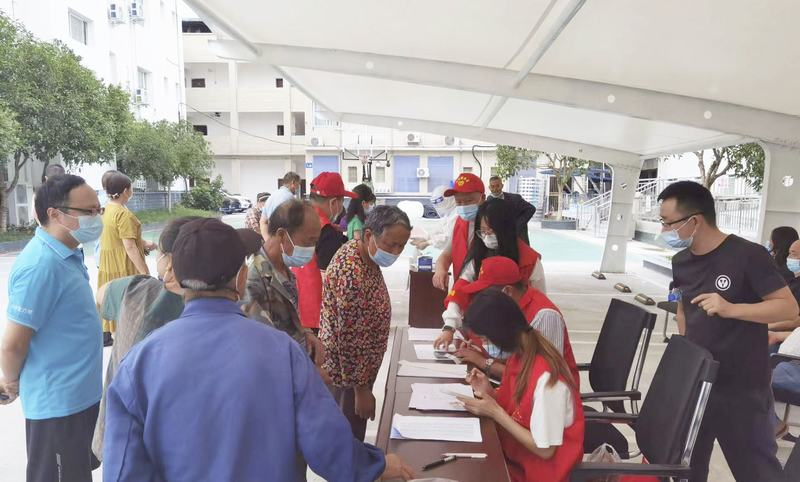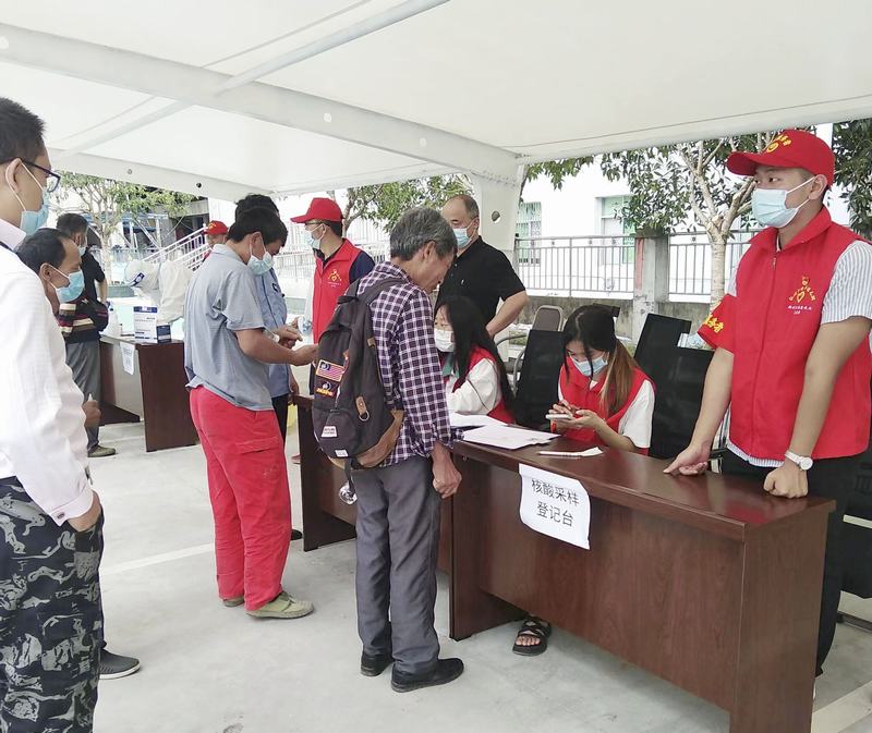 9月7日,天剛蒙蒙亮,鎮政府工作人員、社區工作人員、項目部黨員志愿者、衛生院醫護人員和項目部黨員志愿者一大早在項目部辦公樓后的大院集合,按照具體分工,緊鑼密鼓地做好了各項準備工作。早上7點,當地村(居)民就陸陸續續地來到項目部大院,首先在入口處按照提示掃場所碼,然后進入核酸檢測點現場,黨員志愿者們堅守在各自崗位上,有人在維護秩序、有人在信息采錄、還有人在應急保供,有人在耐心幫助不熟悉核酸程序的老年人,現場做核酸檢測的村(居)民積極配合,有序排隊做核酸檢測。