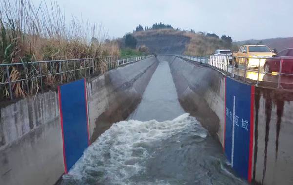 (2024年4月7日上午10:10毗河應急調水運行水頭到達踏水分水閘)