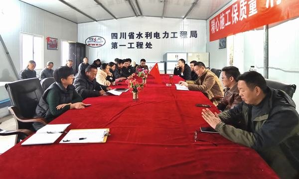 2020年12月12日,公司第一工程處在宜賓蟠龍湖水庫樞紐工程項目部會議室召開職工大會,傳達學習省水發集團黨代會、工代會、職代會精神,項目部全體職工參加。