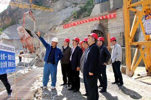 2015年4月24日上午,甘肅電力公司總工程師李儉 、發策部副主任牛繼恩,明珠集團公司總經理李貴平,副總經理魏寧在九龍峽公司董事長楊利民陪同下,到九龍峽水電站工程進行調研、慰問,四川省水利電力工程局九龍峽水電站樞紐工程項目經理陳道剛全程陪同。
