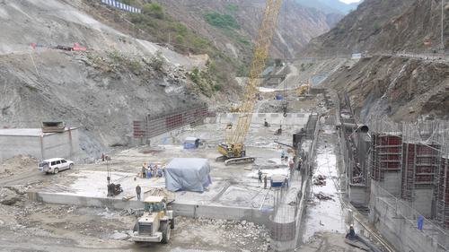 截至2015年6月,閘壩工程完成底板、左護壩至2304m高程、左右邊墻至2300m高程及上游鋪蓋的混凝土澆筑;消能防沖工程完成消力池底板、消力坎及左右邊墻至2303m高程的混凝土澆筑;取水口工程完成取水口底板、回填及大部分閘墩的混凝土澆筑。