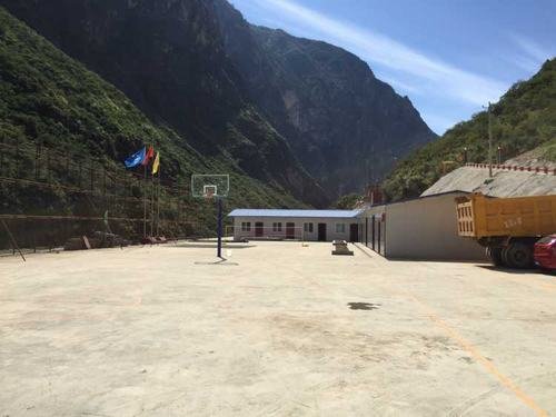 水洛河潺潺的流水,斜陽映襯著青翠的山巒。在這美麗的山水圖畫間,天藍色的板房錯落有致,嫩芽初上的花臺上隨風飄揚的徽旗略顯莊嚴,白灰色的籃球場上時而傳來陣陣喝彩……博瓦水電站首部樞紐工程項目經理部臨建設施已建成投用。