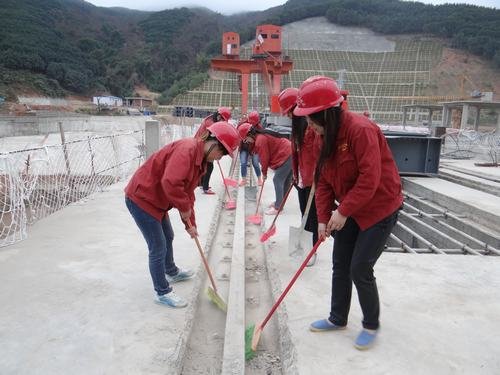 在這次勞動中,大家團結協作、干勁十足,發揚不怕苦、不怕累、不怕臟的精神,重活、臟活搶著干,特別是清理壩頂行車梁軌道和電纜溝中的垃圾時,因受尺寸限制,只能手捧出淤渣。經過大家一上午的緊張忙碌,終于將壩頂清掃干凈,材料堆放整潔,安全警示標牌掛放規范。施工現場的容貌煥然一新。