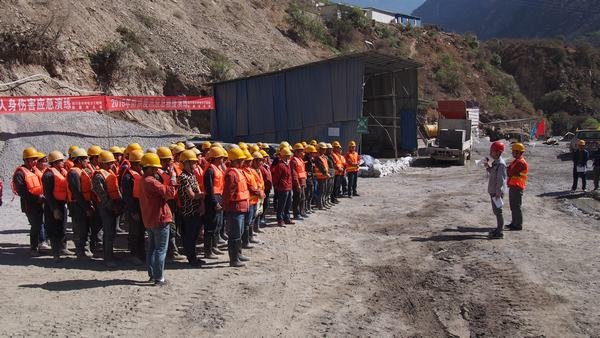 上午9點(diǎn)30分,在接到新藏電站監(jiān)理部轉(zhuǎn)木里縣氣象局通知,未來1小時(shí)內(nèi)水洛河上游會(huì)有一次強(qiáng)降雨,水洛河水位將急劇暴漲。我部在接到啟動(dòng)《防洪度汛應(yīng)急預(yù)案》指令后,各搶險(xiǎn)救援突擊隊(duì)負(fù)責(zé)人帶領(lǐng)隊(duì)員迅速趕到現(xiàn)場(chǎng)。搶險(xiǎn)隊(duì)分為抗洪搶險(xiǎn)小組、醫(yī)療救護(hù)組、物資組、事故調(diào)查組、安全觀察組。