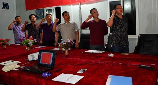 各項(xiàng)目部宣誓儀式由范雪山處長(zhǎng)領(lǐng)誓,主要管理人員參加宣誓,各班組長(zhǎng)及部分管理人員列席儀式。