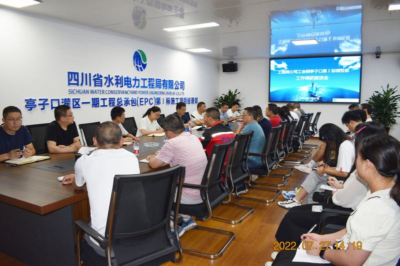 2022年7月27日下午,公司黨委委員、職工董事、工會主席夏永紅、工會副主席付麟麗到亭子口灌區(qū)一期工程總承包(EPC)第Ⅰ標(biāo)施工項目經(jīng)理部開展工作調(diào)研。項目部班子成員、各部門負責(zé)人、職工代表參加了調(diào)研座談。